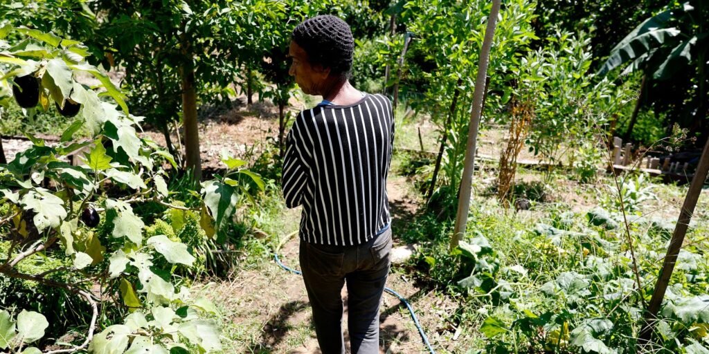Faz um ano que a rotina de Vera Lúcia Silva de Souza, de 74 anos, começa cedo. Ela molha as plantas de casa e encara a pé a descida íngreme desde o alto do Morro do Salgueiro, na zona norte do Rio de Janeiro. Na parte baixa da comunidade, fica a horta comunitária onde trabalha para complementar a renda.![]()