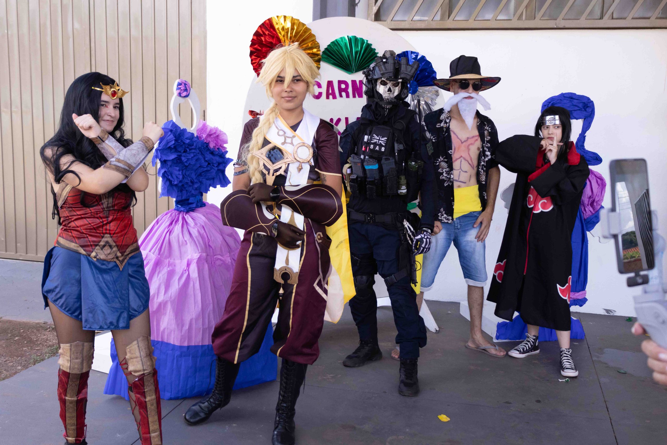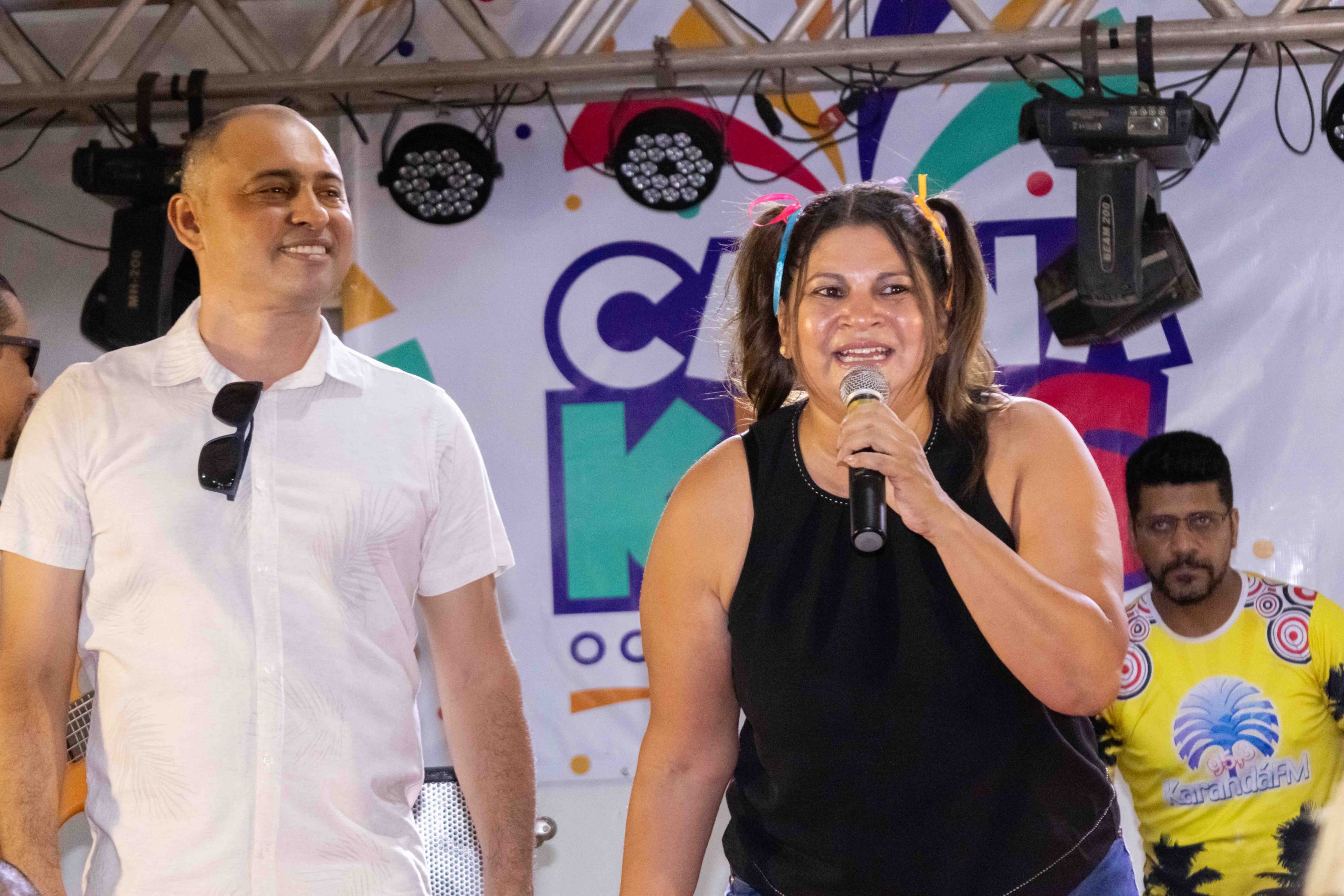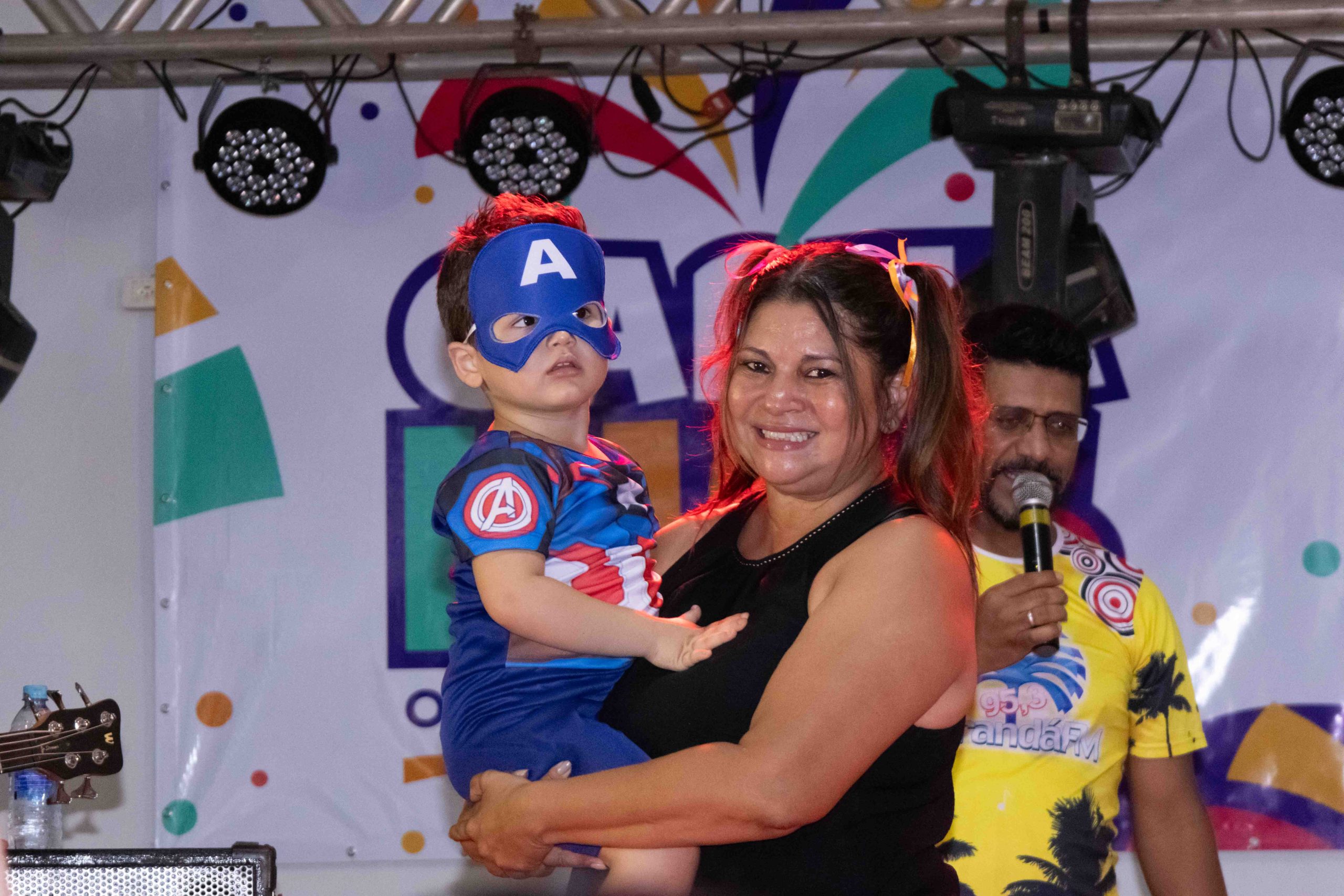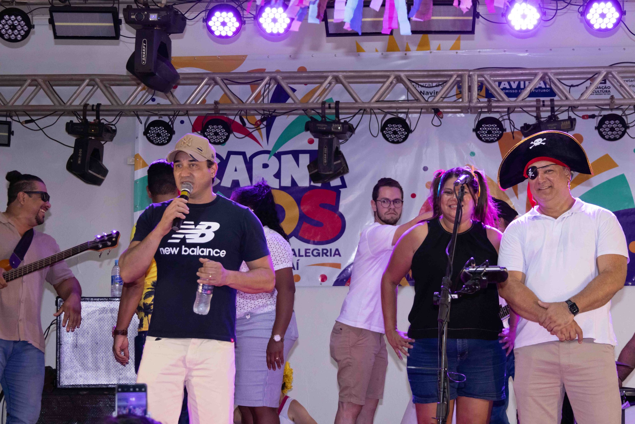 O prefeito Rodrigo Sacuno; a 1ª dama Naiza Capuci Sacuno (Coordenadora de Políticas Públicas para Mulher); a vice-prefeita Telma Minari (Gerente de Assistência Social); o gerente de Educação e Cultura, André Santana; e o superintendente de Cultura, Deyler Avelar, fizeram a abertura do Carna Kids e participaram da matinê acompanhando as danças junto com a criançada.