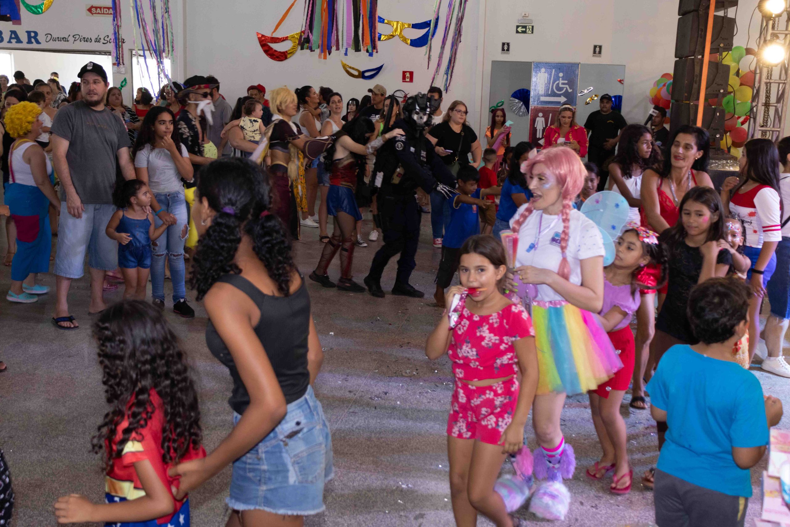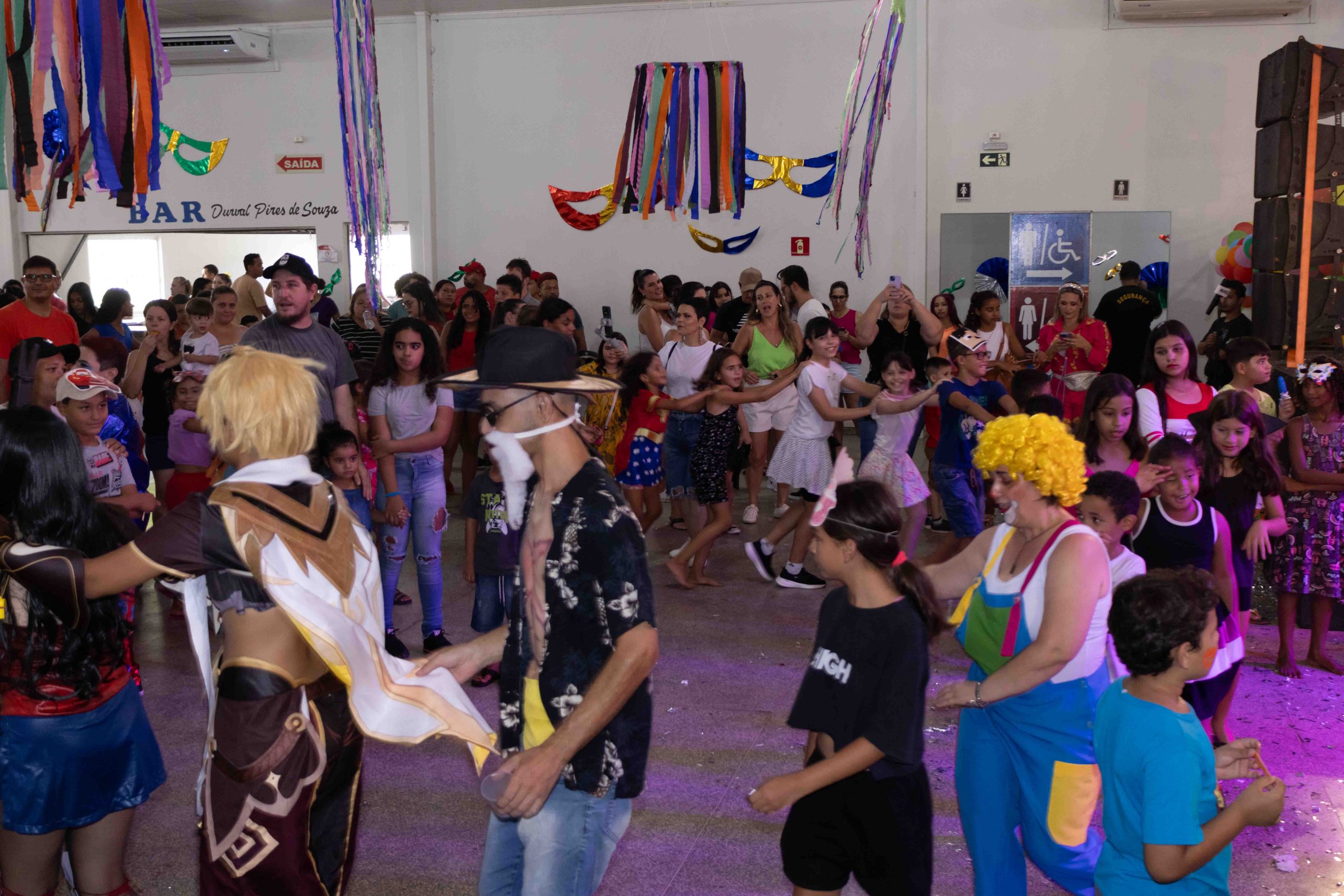 Salão da Seleta foi decorado para receber as crianças foliãs que dançaram na festa cultural promovida pela Prefeitura de Naviraí através da Fundação Cultural. ©Roni Silva/PMN